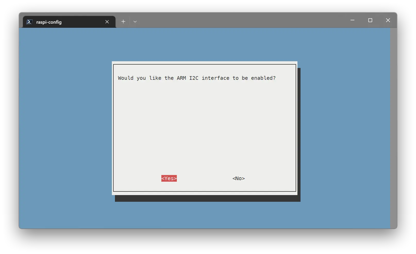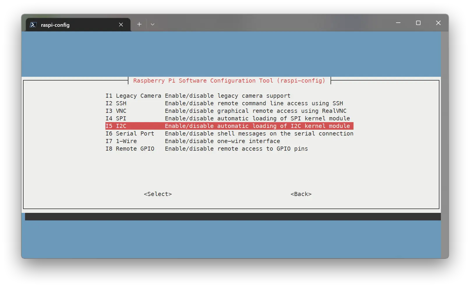 输入上述命令进入树莓派设置清单,选择3 Interface Options接口配置,选中I2C设置。