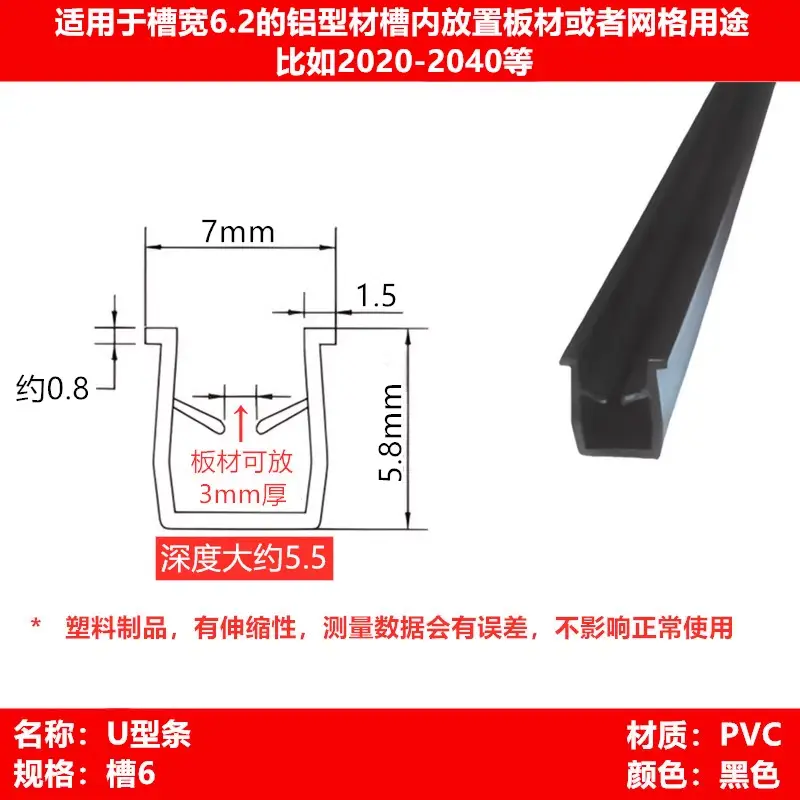 有个东西叫做U型条或者U型槽条,是卡在铝型材的槽里的一种硬塑料条,可以用来固定亚克力板或者其他面板。可以算一下长度来购买,安装的时候也是卡进去就ok了,比较简单。从店铺的给的尺寸来看,我们可以选择3mm厚的亚克力板,根据其固定深度来算出亚克力板的尺寸是640x230x3(mm)然后就可以找店家定制了啦,我选择的是长虹亚克力(真的是被nothing phone种草长虹玻璃长虹亚克力这种东西哈哈哈)。
